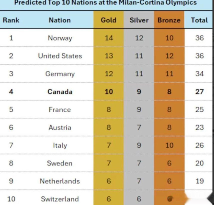 别扯什么东道主红利,这次是真·境外作战。人家加拿大,10金起步,冲着第四去的。挪威、美国、德国,早把奖牌榜前三锁死了。意大利当东道主,7金9银10铜,排第七。中国?连前十都悬。